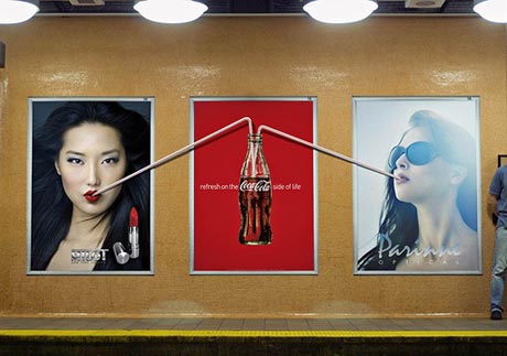 可口可乐的户外大型创意广告,以吸管为核心,用各种巧妙的方式——从恶搞其他广告牌到恶搞楼体到玩设施创意,把我们对可乐的“渴望”感挥洒得淋漓尽致。看到这个就想喝上一口了吧。